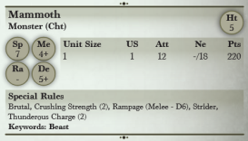 Mammoths can be used as Monster (Cht) unit for the League of Rhordia, Kingdoms of Men and Ogres