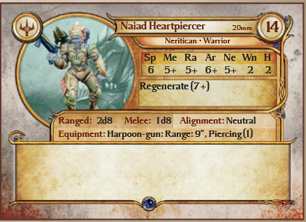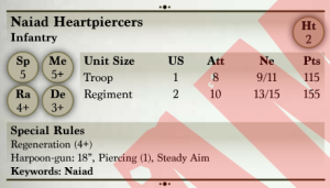 Forces of Nature - In cruel mockery of the seafarers who have long invaded their ocean realm, preying on sea creatures, Naiad Heartpiercers carry heavy harpoon-launchers. Blessed with incredible longevity, Naiads spend several lifetimes practising with these weapons, becoming preternaturally deadly shots.