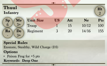Thuul were introduced as a unit in 2.1 - Uncharted Empires 2nd Edition Rulebook for the Trident Realms which has continued into 3rd Edition.