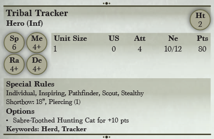 Tribal commanders greatly value the skills of the Trappers, who can glide silently through the land, stalking their unknowing prey. They are lightly armoured and use a variety of throwing weapons or bows to lethal effect.