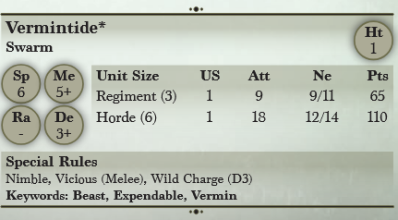 Vermintide are a Swarm unit of scurrying rats, some are normal size, some are the size of dogs!