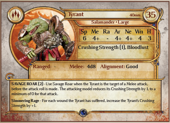 Tyrants are large, heavily muscled brutes that were nearly made extinct during the War with Winter. A bare few survived the great exodus but their numbers are steadily increasing to a point where they are confident accompanying the Salamanders to war.