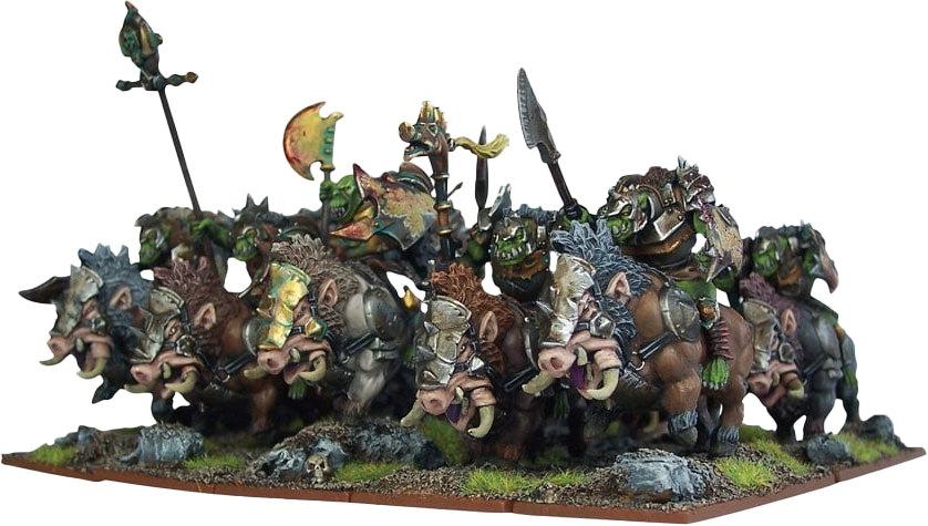 Fighting atop captured Gores, the beasts as abused as their riders, they are capable of covering ground at a punishing rate. Orcs are bred for war, and once the scent of blood gets in their porcine nostrils they will gladly throw themselves into battle with wild abandon.