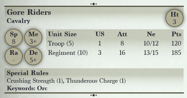 Gore Riders are a unit for the Orcs.