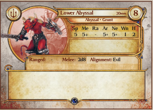 Lower Abyssals are the Infantry Hordes of the First Circle, which lies the closest to the mortal world and are the legions of the Wicked Ones.