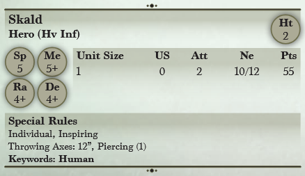 Due to their vast knowledge of what has gone before, skalds are often close advisors to both Thegns and Lords alike.