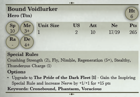 Pride of the Dark Fleet is an upgraded Bound Voidlurker hero unit for the Twilight Kin