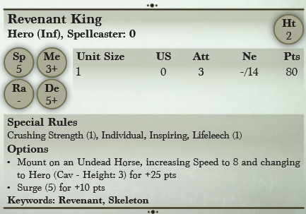 Buried in their barrows together with their most precious weapons and armour, the Revenant Kings make superb officers for the legions of Skeletons and Revenants.