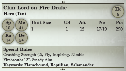 Clan Lord on Fire Drake are the supreme commanders of the Salamander armed forces, often leading from the front and by example.