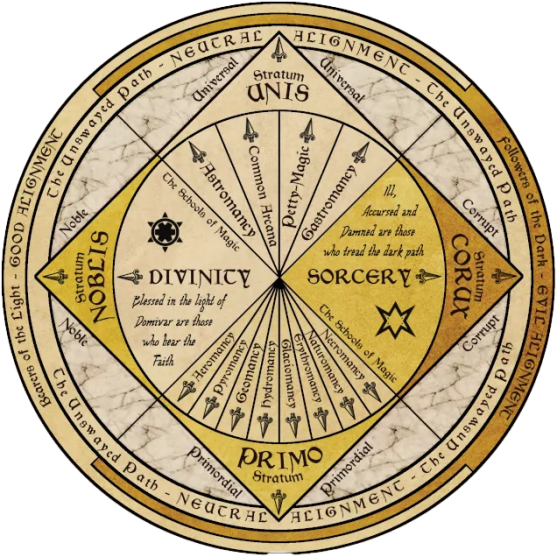 Universal is a neutral type of magic, also known as Stratum Unis. The schools of magic include: